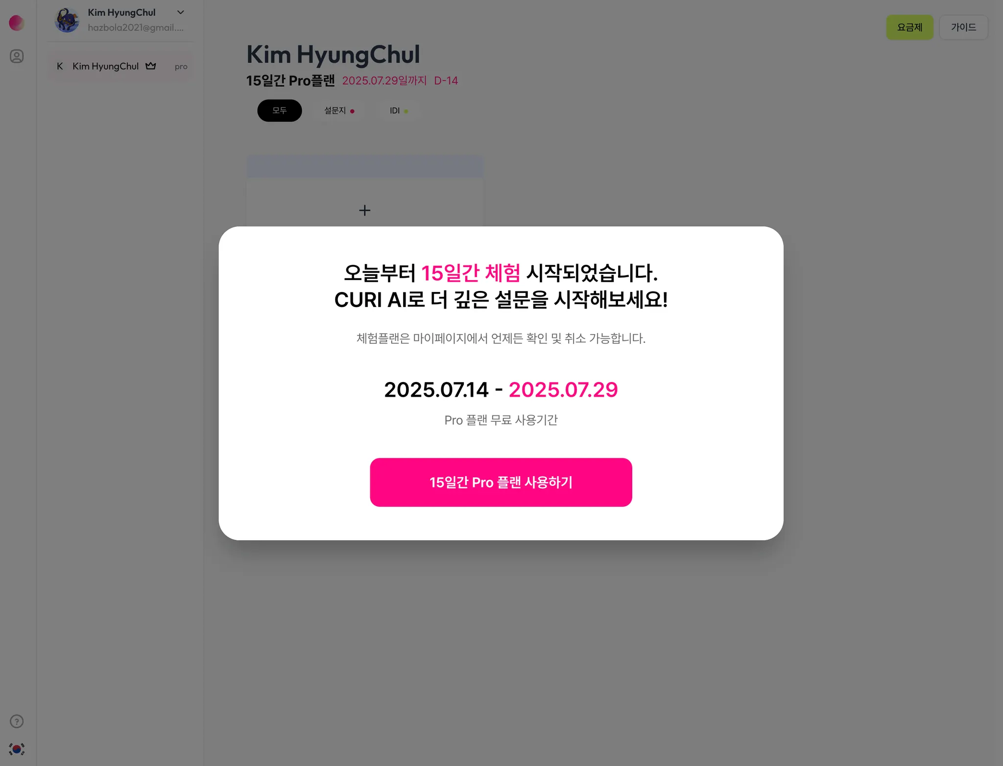 curi 무료 15일 플랜
