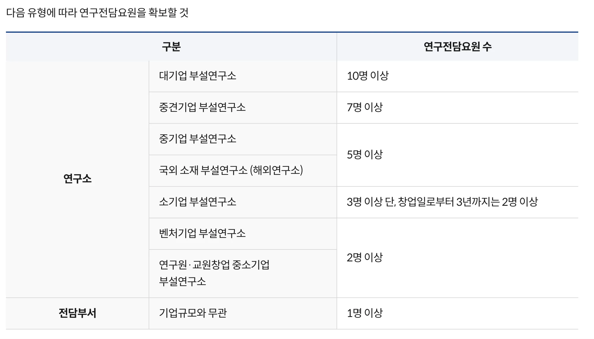 연구전담부서 설립 요건 ⇒ 인원 1명 / 기업부설연구소와 다른 인원 배치가 핵심