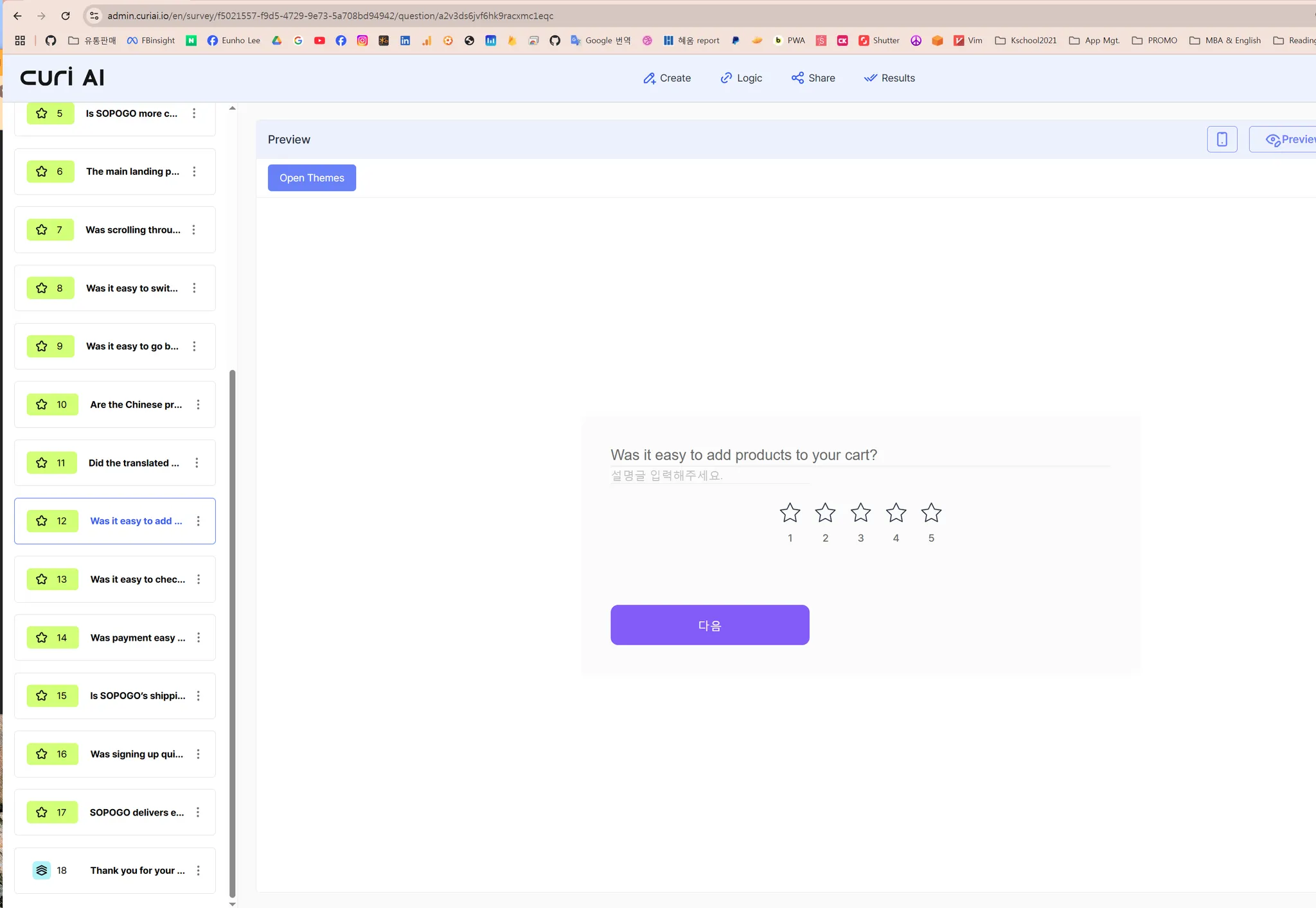 250501Jesse 영어가 기본인 설문으로 시작되었는데 버튼은 한글로 기본 써 있음. 영어가 이미 기본이라 번역을 할 수도 없음