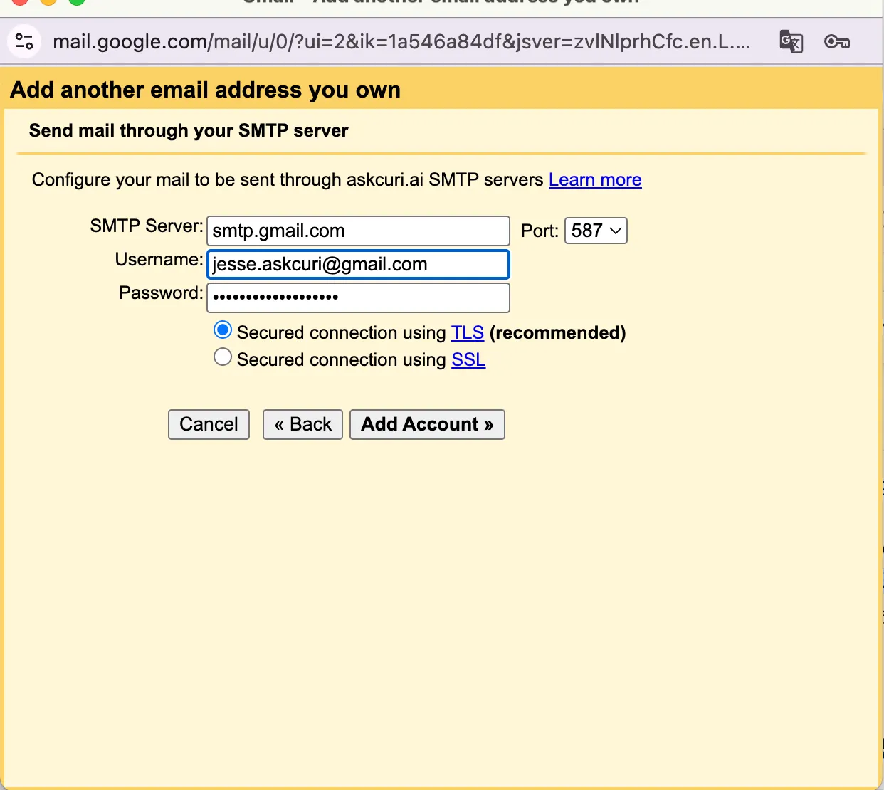 회사 메일 계정 설정(송신 수신 @askcuri.ai)