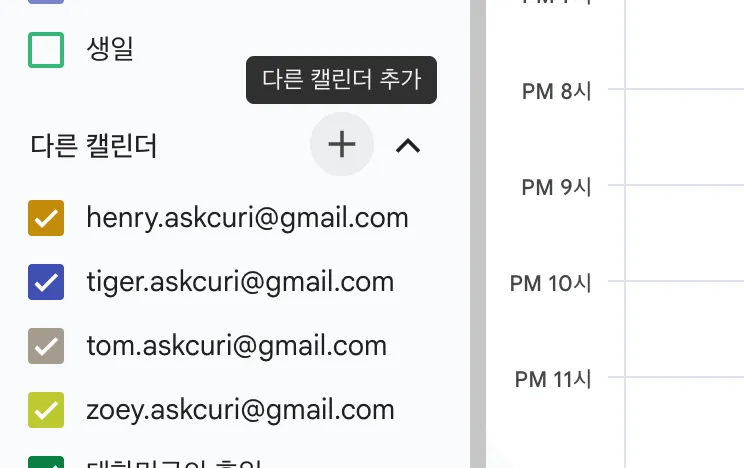 팀원들의 @gmail.com 계정을 캘린더 구독한다. 구독요청을 받은 사람은 승인한다.
