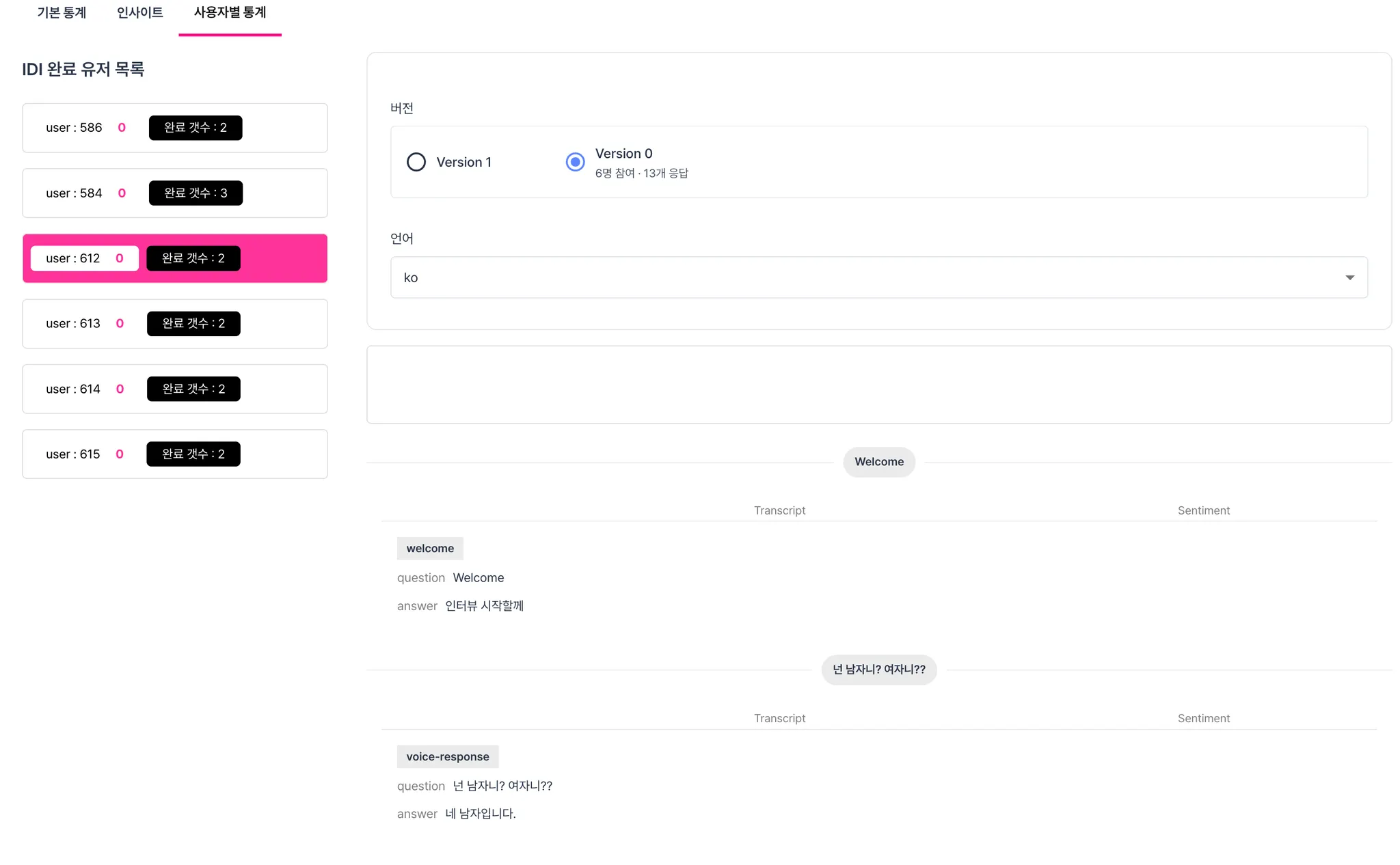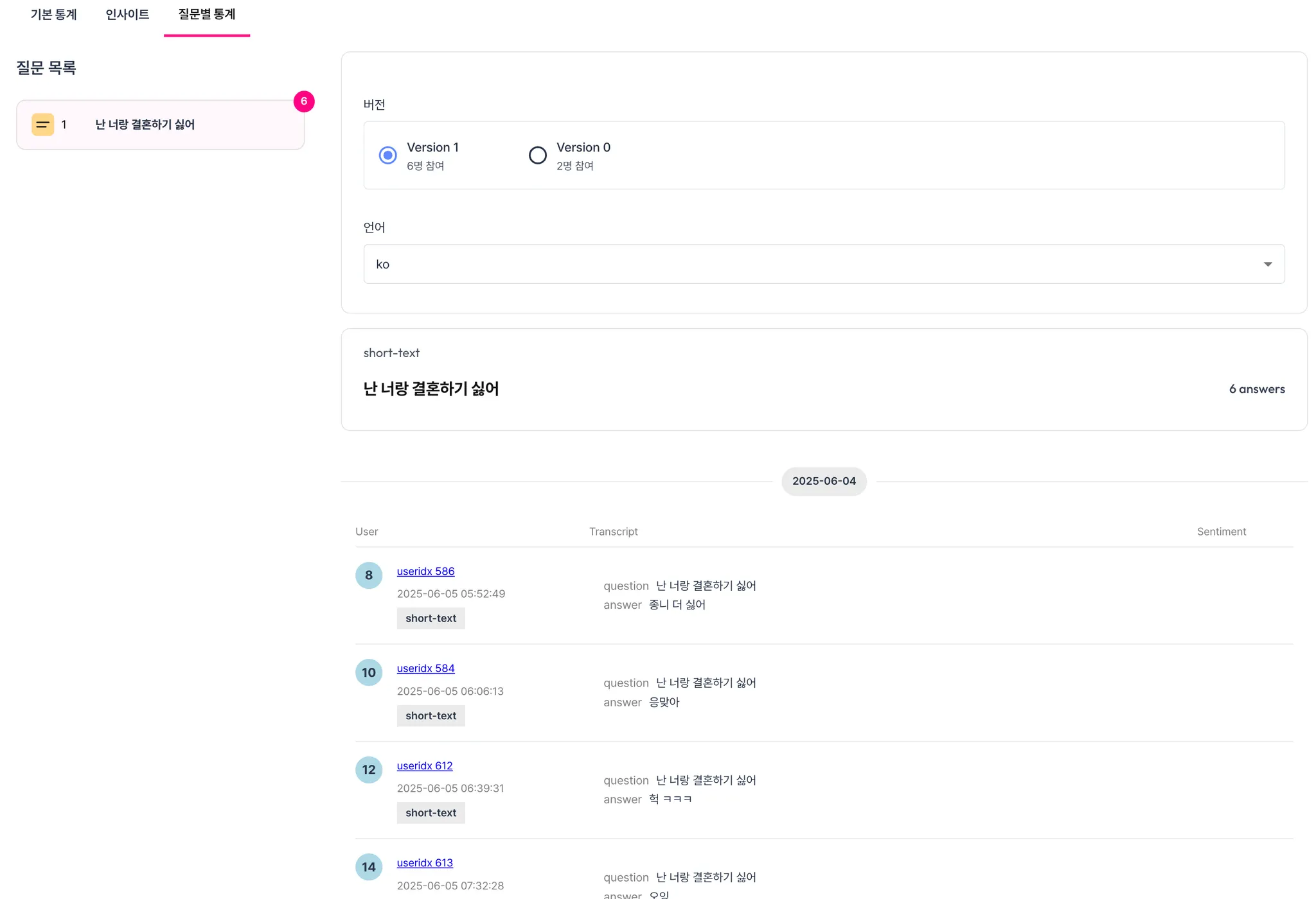 결과 → 질문별 통계