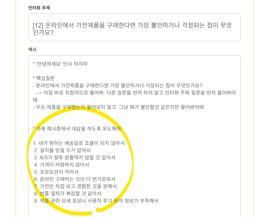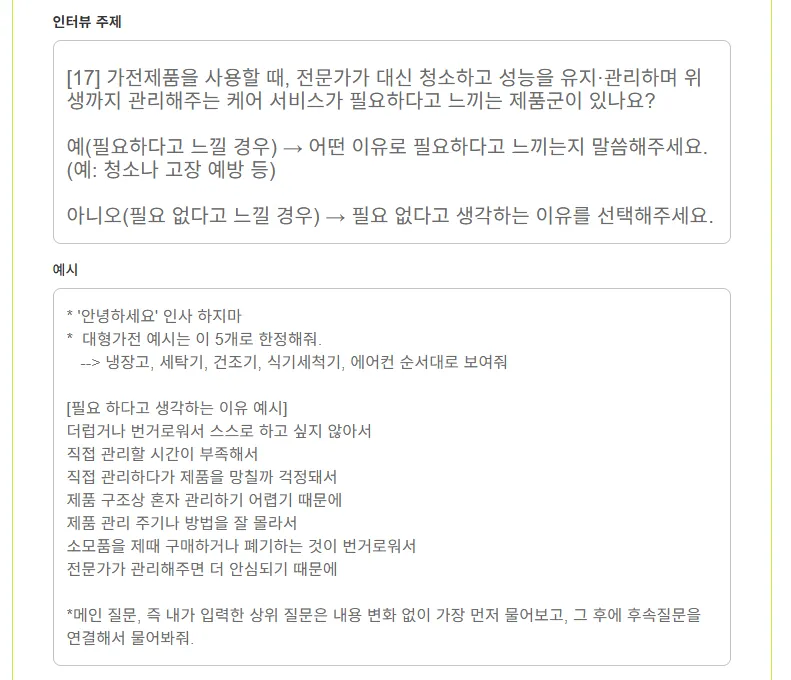 —> LG가 프롬프트에 넣은 카테고라이징 (아래 [12],[17]참고) - 모든 IDI가 이렇게 유의미하게 답변 카테고라이징이 되어야함