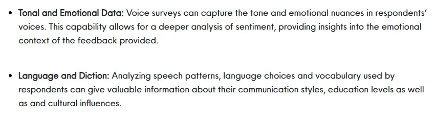 또한 AI는 개방형 응답(open-ended responses)을 빠르고 정밀하게 분석해 테마 추출, 감성 분석, 개체 인식(entity recognition) 등에 강점이 있다고 합니다.