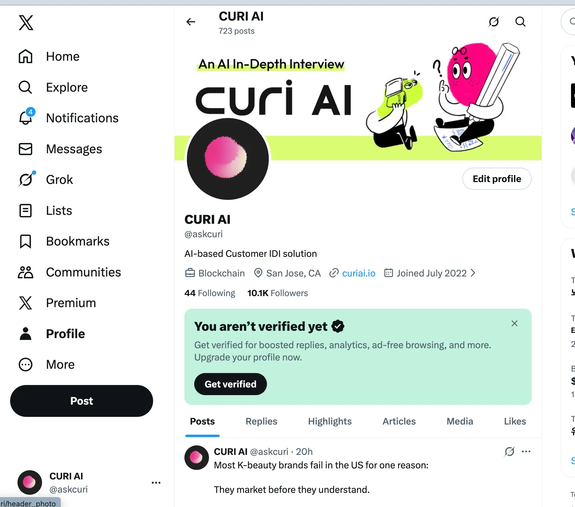 2025-12-05 | CURI AI는 K-beauty 해외 진출 브랜드를 위한 AI 기반 VOC·서베이 파트너입니다… | 91 | 40 | 16 | 17.0% | 12.8% | 3 | 1 | 0 | 1 | 0 | |