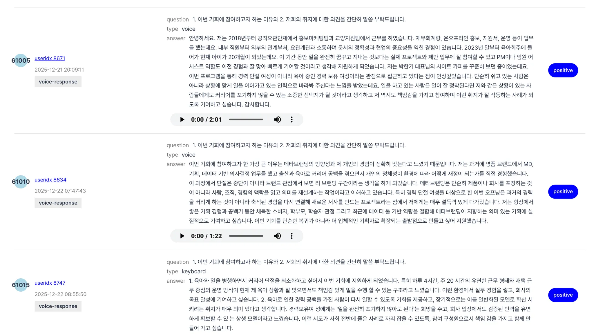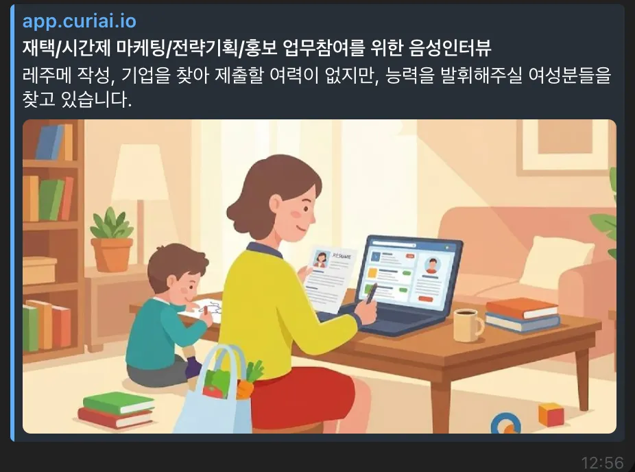 육아중인 경력보유여성 ⇒ 1인당 AI인터뷰 3만원 → 1만원(프로모션가) / 인재 Pool 확보 후 매칭 조회당 2만원(1만원 작성자, 1만원 큐리)