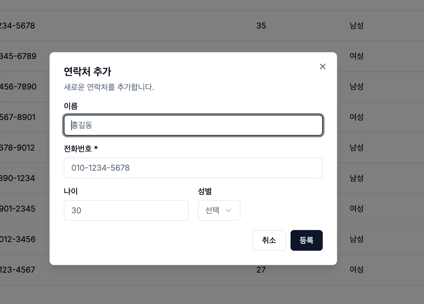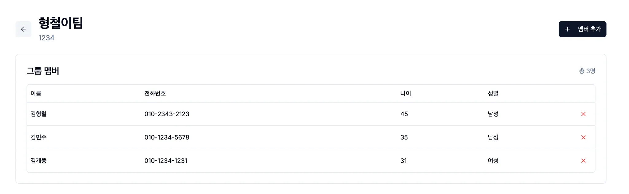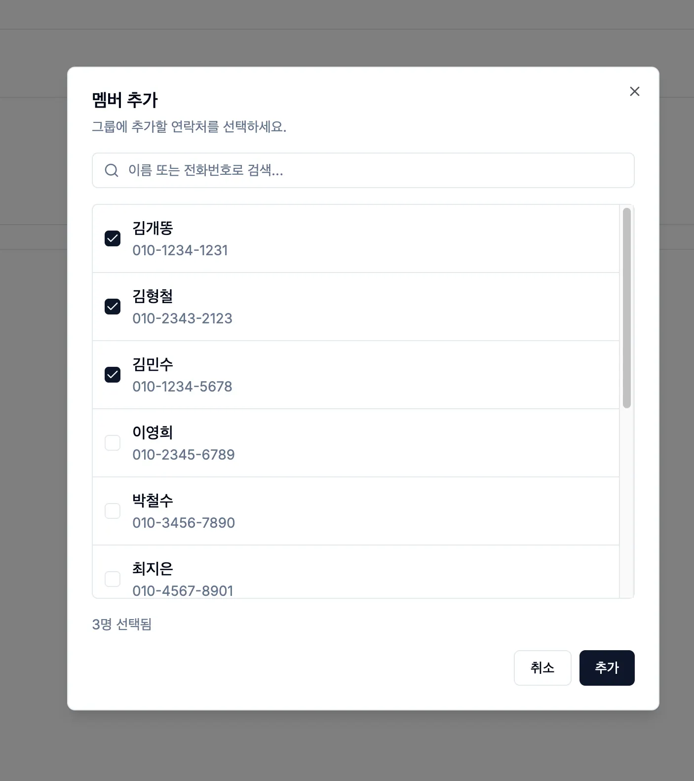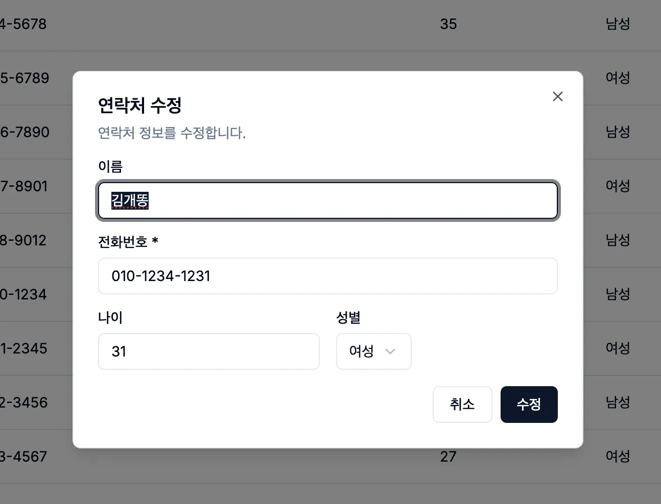 전화번호 관리 UI